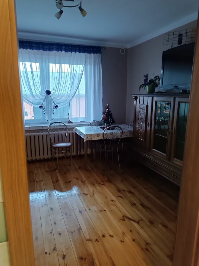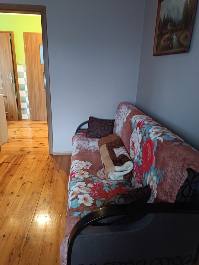 Mieszkanie 2 pokojowe z kuchnią i zapleczem ( 2 dodatkowe pomieszczenia). Balkon .Same pokoje ok.40 metrów, plus łazienka ok. 5 metrów , schowanko (zaplecze) ok. 6 metrów i kuchnia ok. 6 metrów. Prywatna łazienka. Wspólne wejście i korytarz.Pełne wyposażenie potrzebne do zamieszkania. Max dla 4 osób.